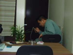 工事部 早田班長です。この写真はケータイでゲームしてますね(^_^;)