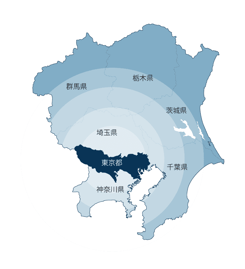 関東全域(東京都・神奈川県・埼玉県・千葉県・茨城県・栃木県・群馬県)